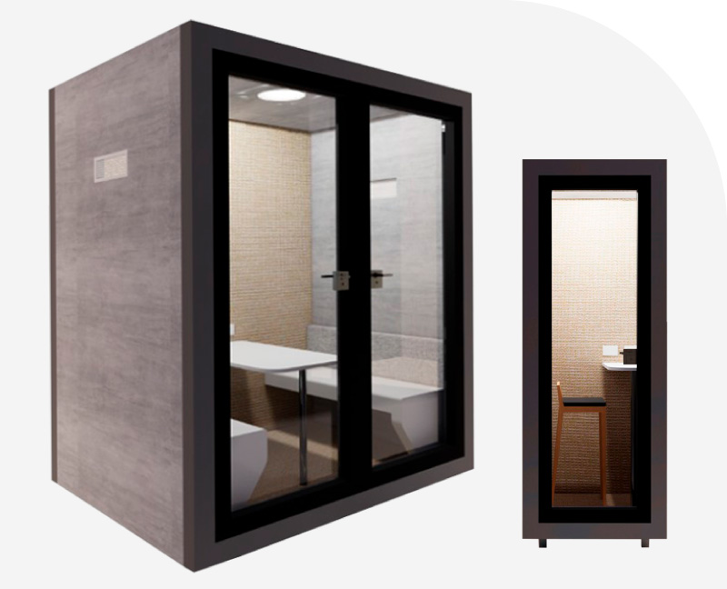 Diseñadas para ofrecer privacidad, confort y aislamiento sonoro, nuestras cabinas acústicas o Phone Booth son la solución perfecta para realizar llamadas, videollamadas o tareas enfocadas sin interrupciones ni distracciones externas.